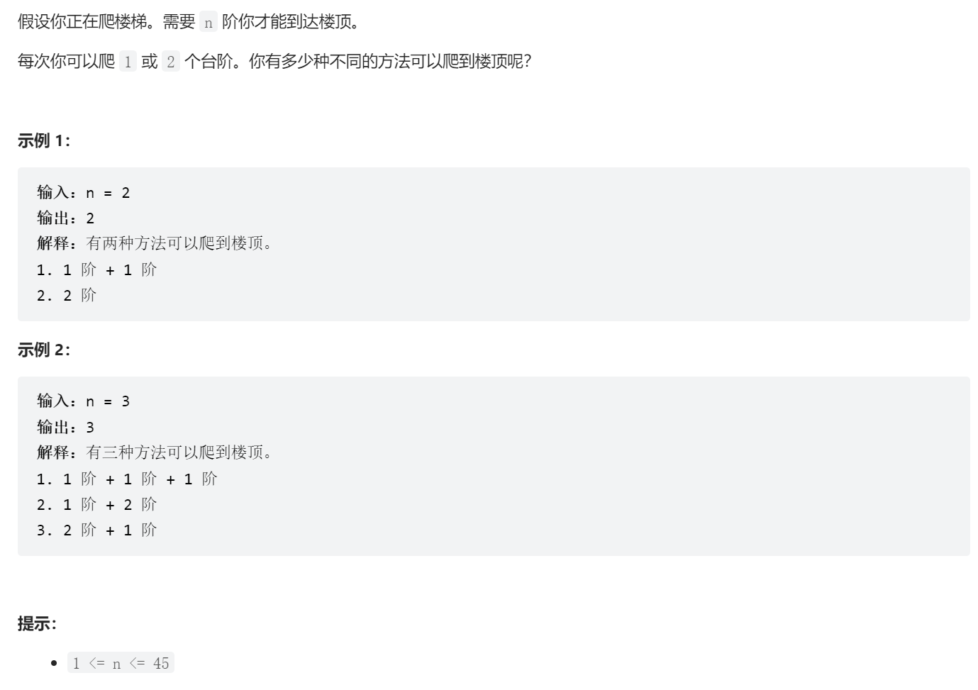 int climbStairs(int n) { | |