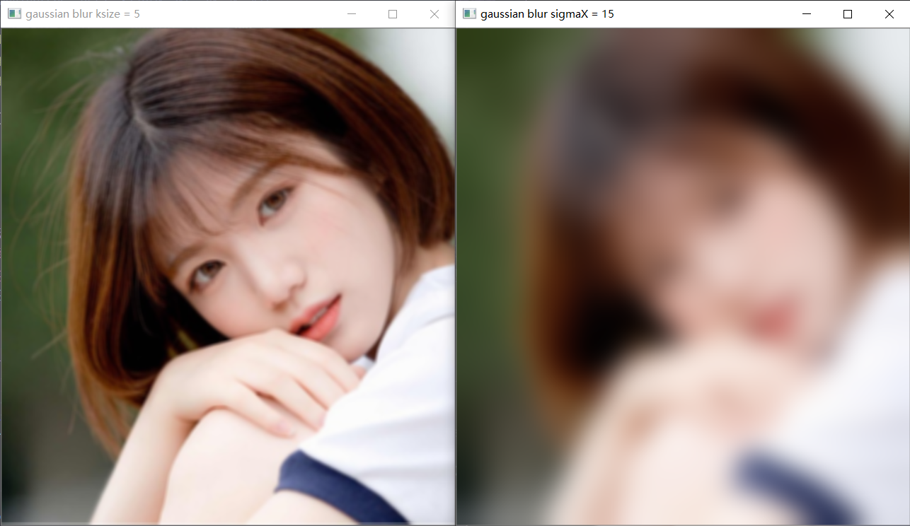 ksize 越大,图像模糊程度越厉害;sigma 越大,图像模糊程度越厉害。高斯模糊的源码分析,可以参考这篇博客:OpenCV 源码分析(三):高斯模糊