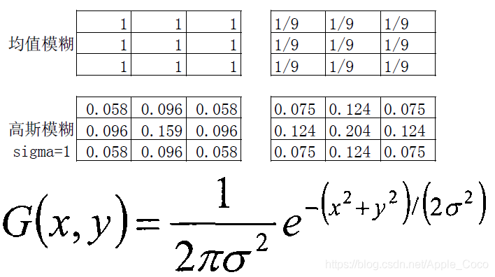 高斯模糊,考虑了中心像素距离的影响,对距离中心像素使用高斯分布公式生成不同的权重系数给卷积核,然后用此卷积核完成图像卷积得到输出结果就是图像高斯模糊之后的输出。