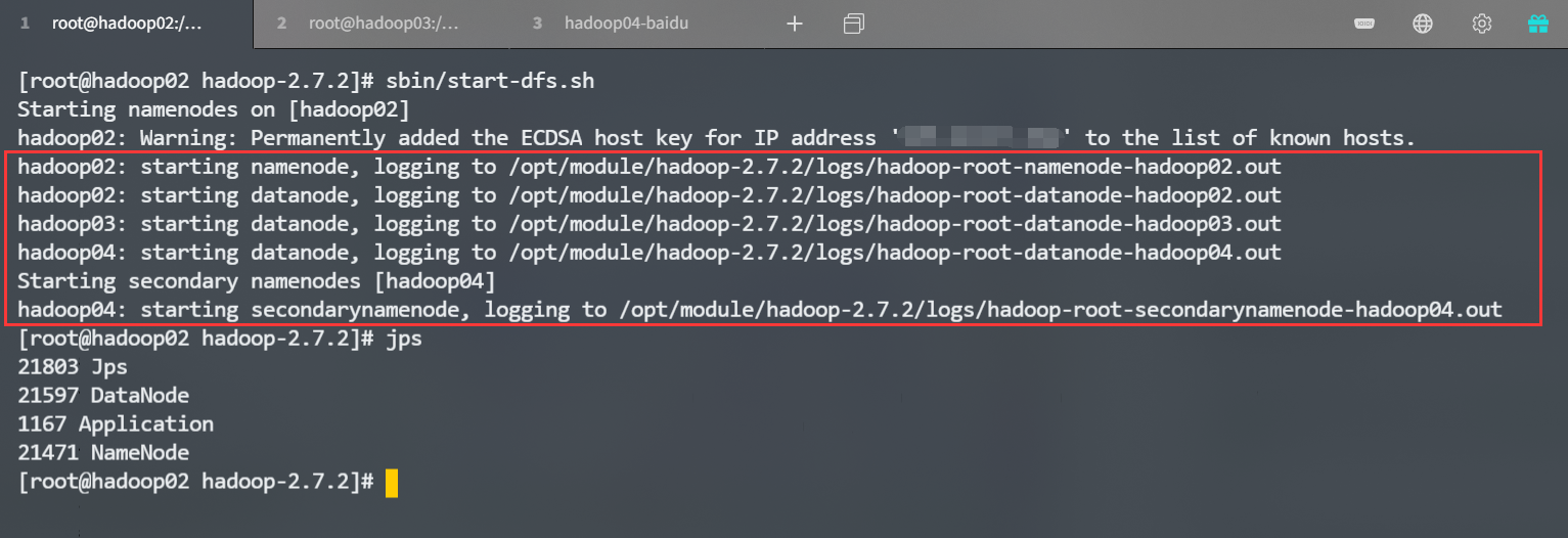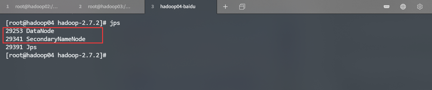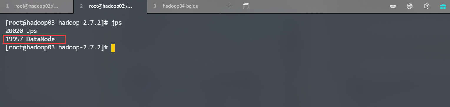 在 hadoop02、hadoop03 以及 hadoop04 上分别启动 DataNode