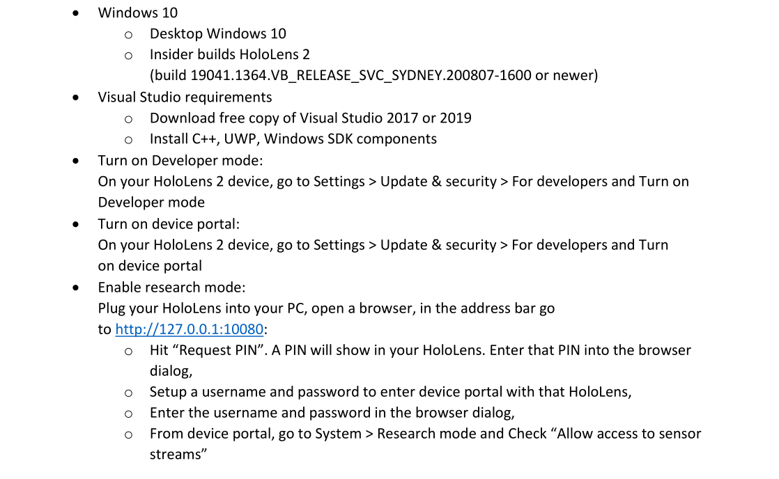 第一代 HoloLens 引入了研究模式,研究不用于部署访问设备上的关键传感器的应用程序。HoloLens2 的研究模式保留了 HoloLens1 的功能,增加了对额外流的访问。同样,对于第一个版本,可以从以下输入中收集数据: