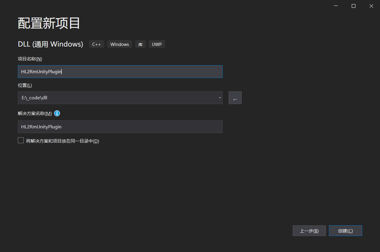 上一篇尝试将 Hololens2 的研究模式与 Unity 项目进行了整合。归根结底,就是将研究模式的相关 API(C++)构建成 DLL 文件,才能实现在 Unity(C#)中进行调用。这篇就介绍一下如何自己创建一个最简单的 DLL 文件,实现在 Unity 中的调用。