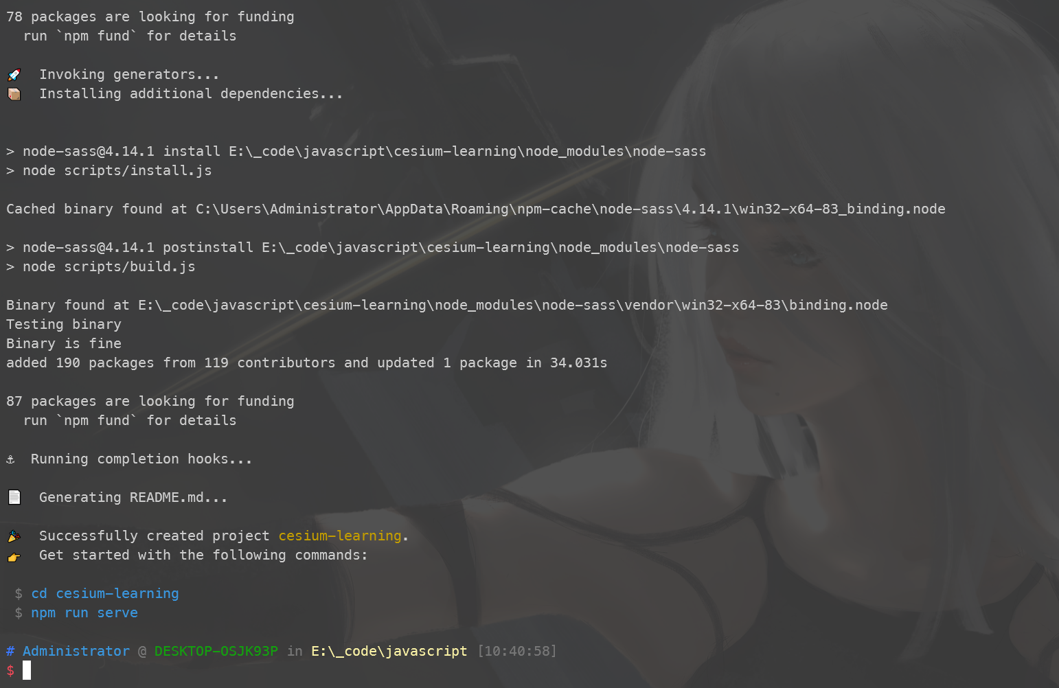 vue create cesium-learning