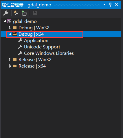 在 Debug | x64 上右击,选择添加新项目属性表,如下图