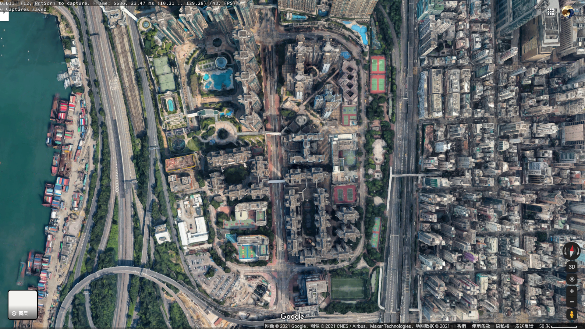 最终下载的 3D 城市模型效果如下(香港区域的城市模型):