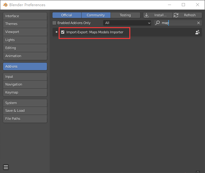 安装好后的 Blender 导入选项没有 Google Map 导入,所以我们还需要安装 Maps Models Importer 插件扩展其功能