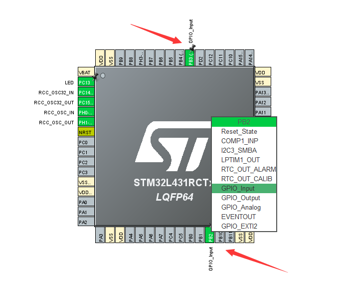 配置 PB2 和 PB3 设置成上拉输入,如下图