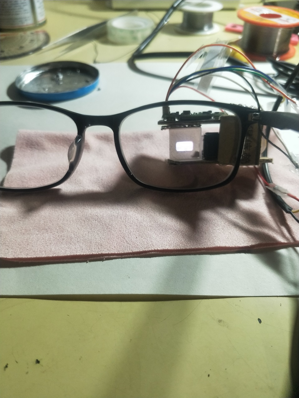 大概是大前天(周四),嘿嘿,忙活了一下午和一晚上,我终于,成功的将低配版的谷歌眼镜制作成功啦,屏幕亮起来的那一刻真的要哭了,喜极而泣呜呜呜,中间的坑太多了,中间了也私信了踢踢大佬,但大佬可能在忙,并没有回复我(截至到现在也没有回复我(笑哭))