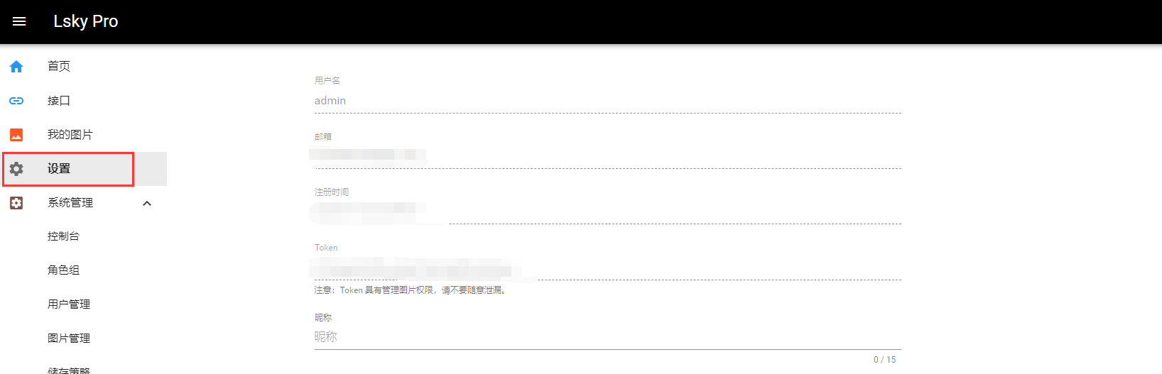 然后点击左侧 设置 ,在里面找到自己的上传 Token,如下图