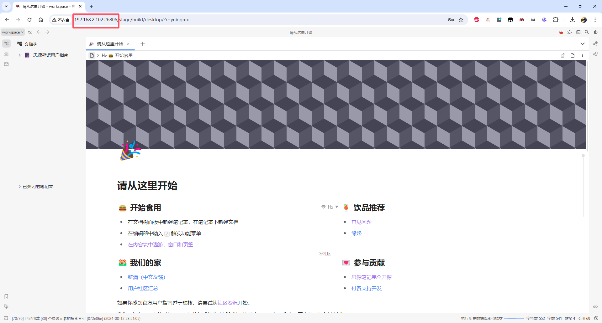 最后,在浏览器访问 极空间IP:26806 地址,能正常访问思源笔记,思源笔记部署篇完美结束~