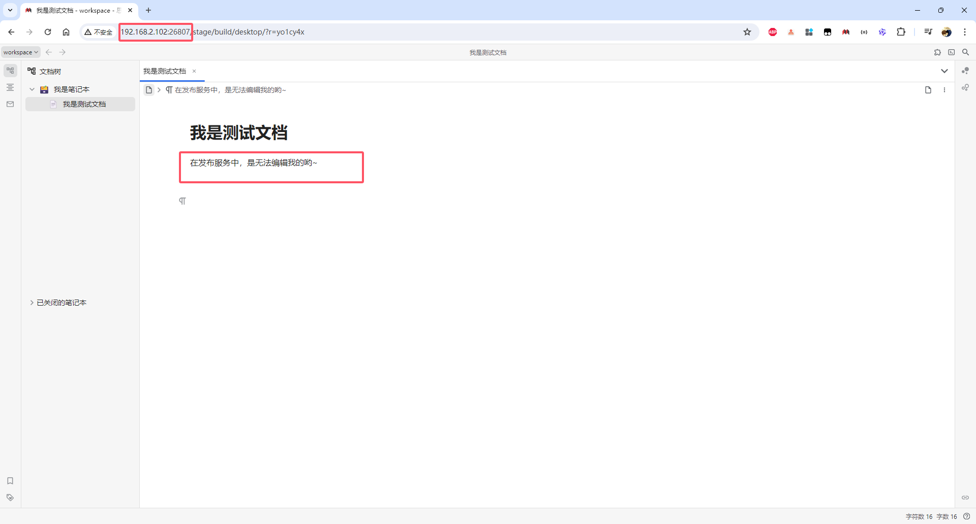 发布模式(端口 6807)和普通模式(端口 6806)的区别就是:发布模式访问笔记本是只读的,其他人是无法更改你的笔记内容的,只能浏览,这对于喜欢分享笔记的朋友来说就非常友好啦~