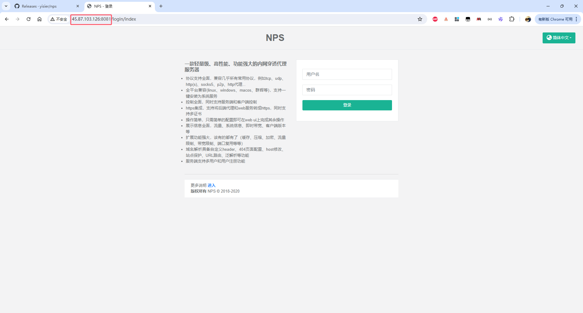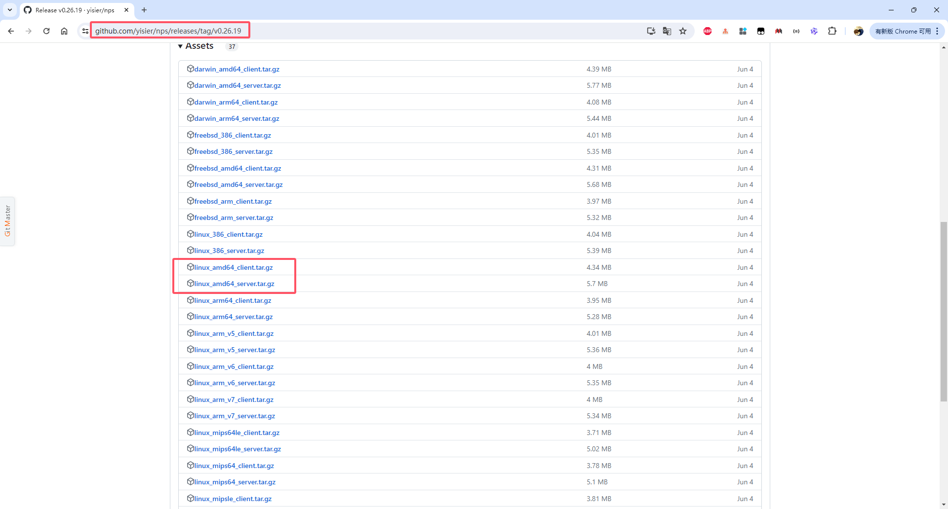 目前最新版本是:v0.26.19,下载地址:https://github.com/yisier/nps/releases/tag/v0.26.19