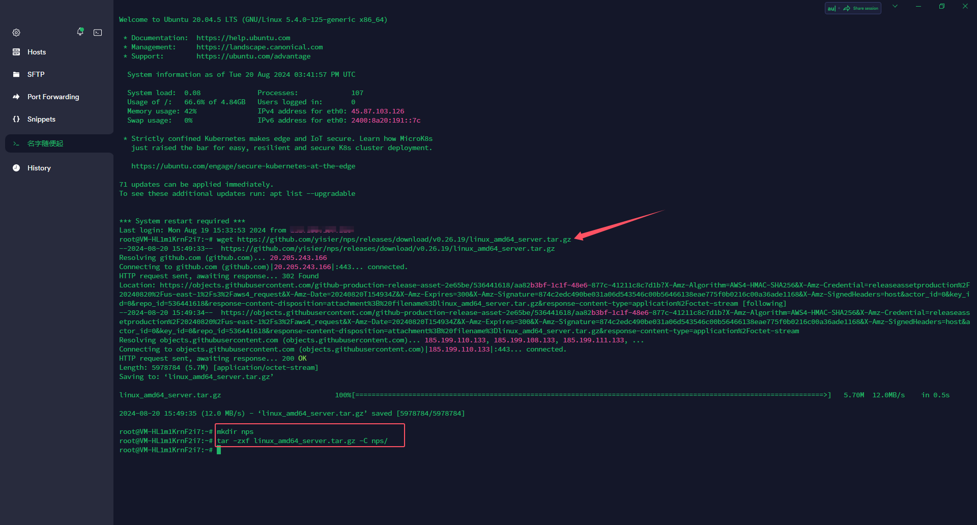 wget https://github.com/yisier/nps/releases/download/v0.26.19/linux_amd64_server.tar.gz | |
