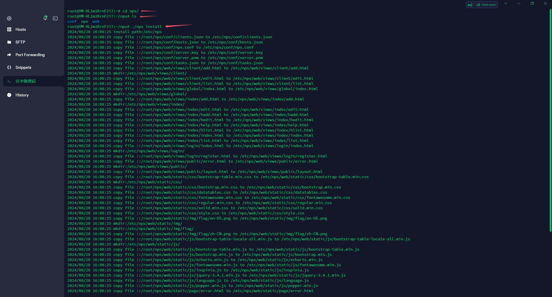 tar -zxf linux_amd64_server.tar.gz -C nps/ | |