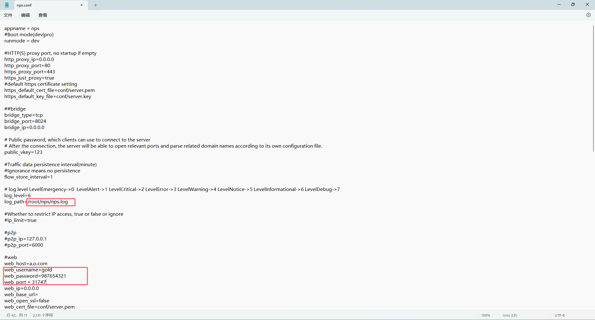 /root/nps/nps.log - 用户名和密码修改为自己的