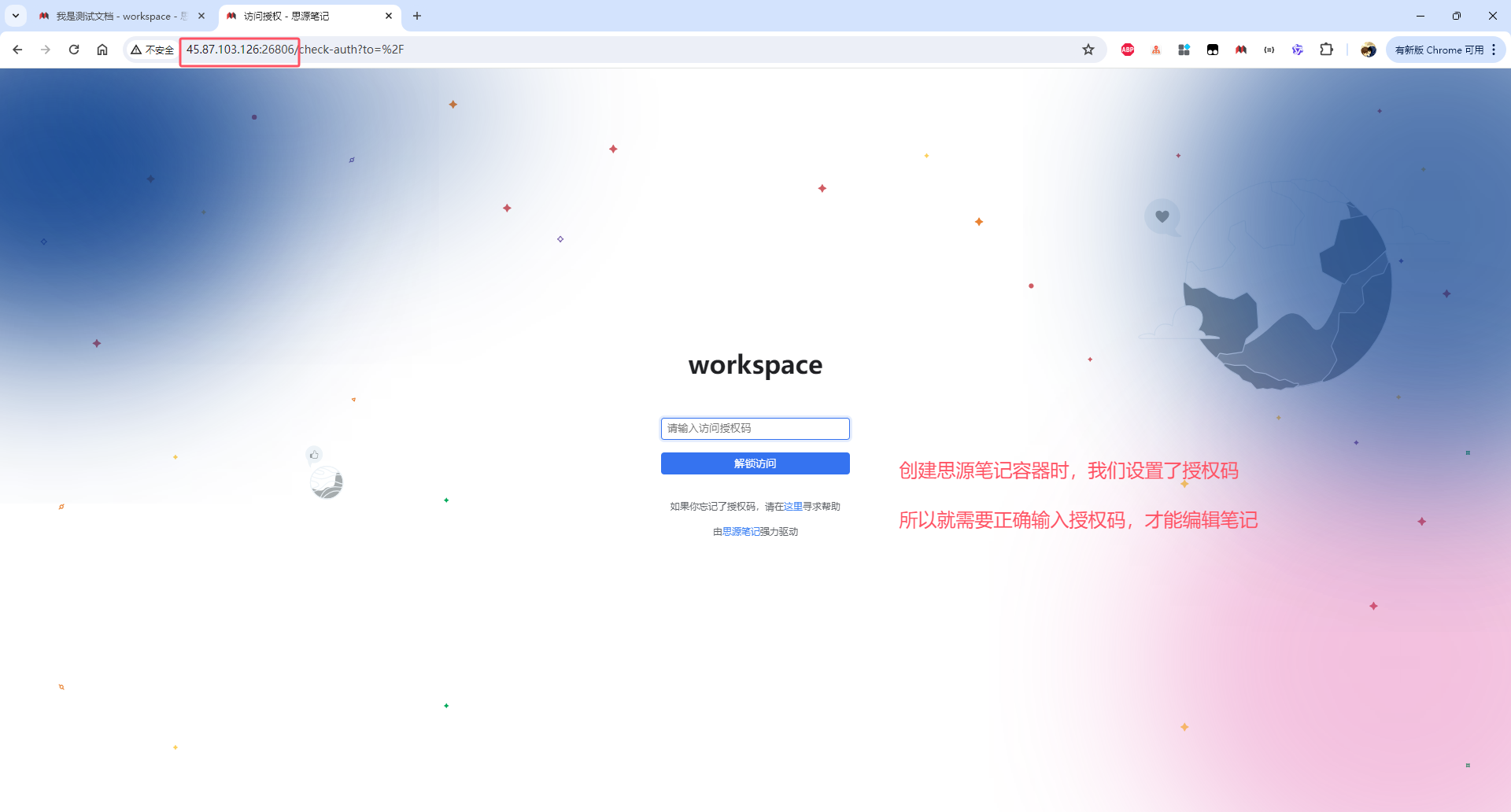 在浏览器输入 云服务器IP:配置的服务端端口 ,就能访问到我们在 内网 的思源笔记发布服务啦~