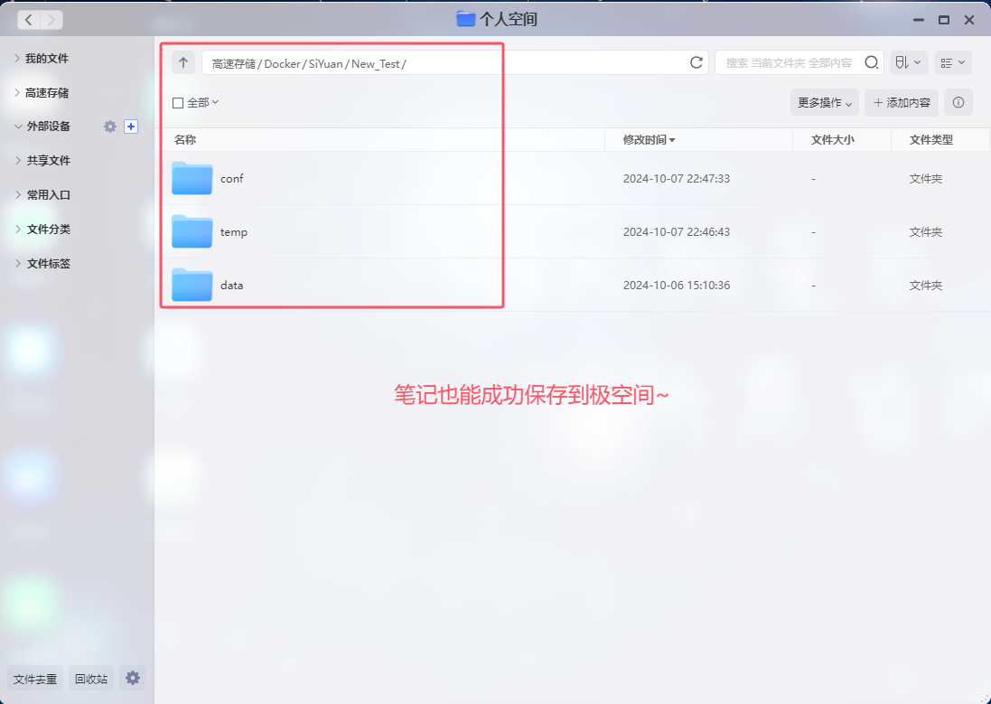 再打开我们在极空间映射的文件夹,也正常映射出了文件。