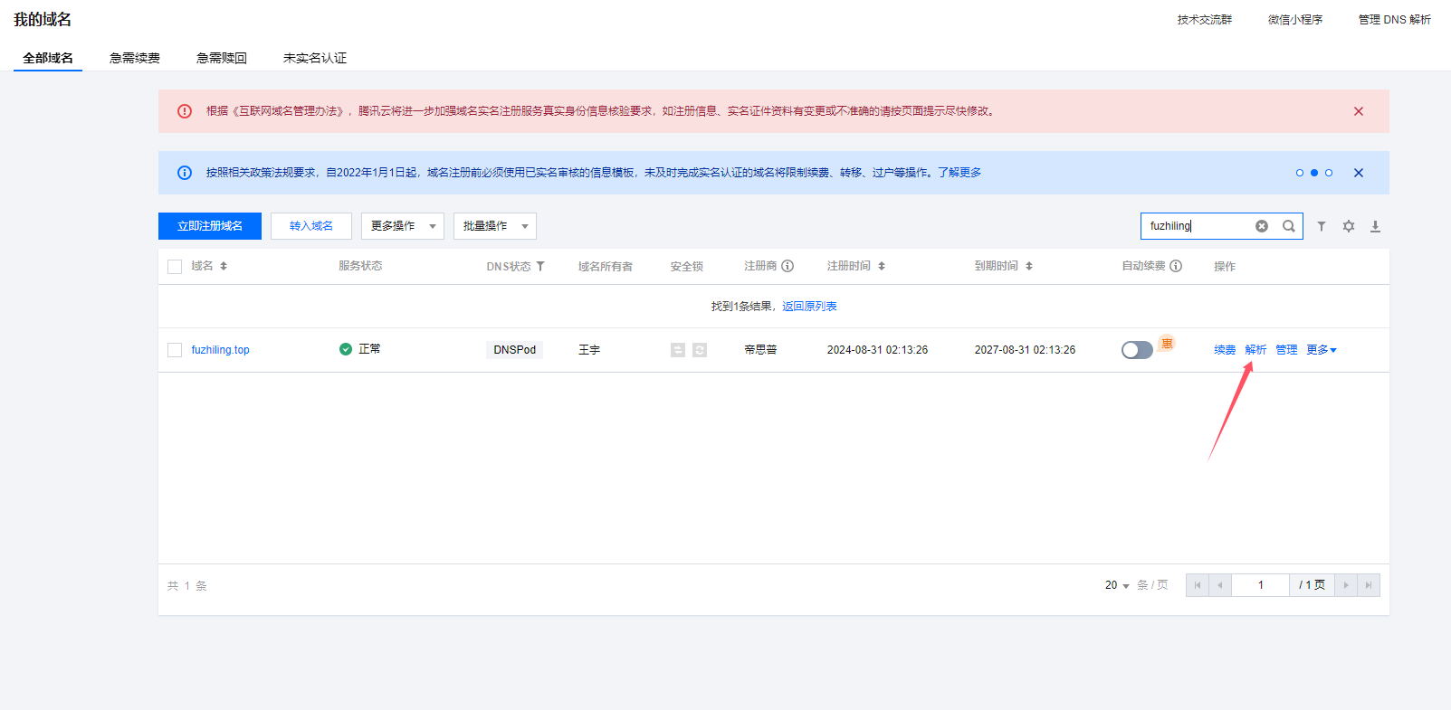 域名怎么来,得购买!因为我之前都是在腾讯云买的域名,所以这里就以腾讯云为例,小伙伴也可以选择其他域名服务商~
