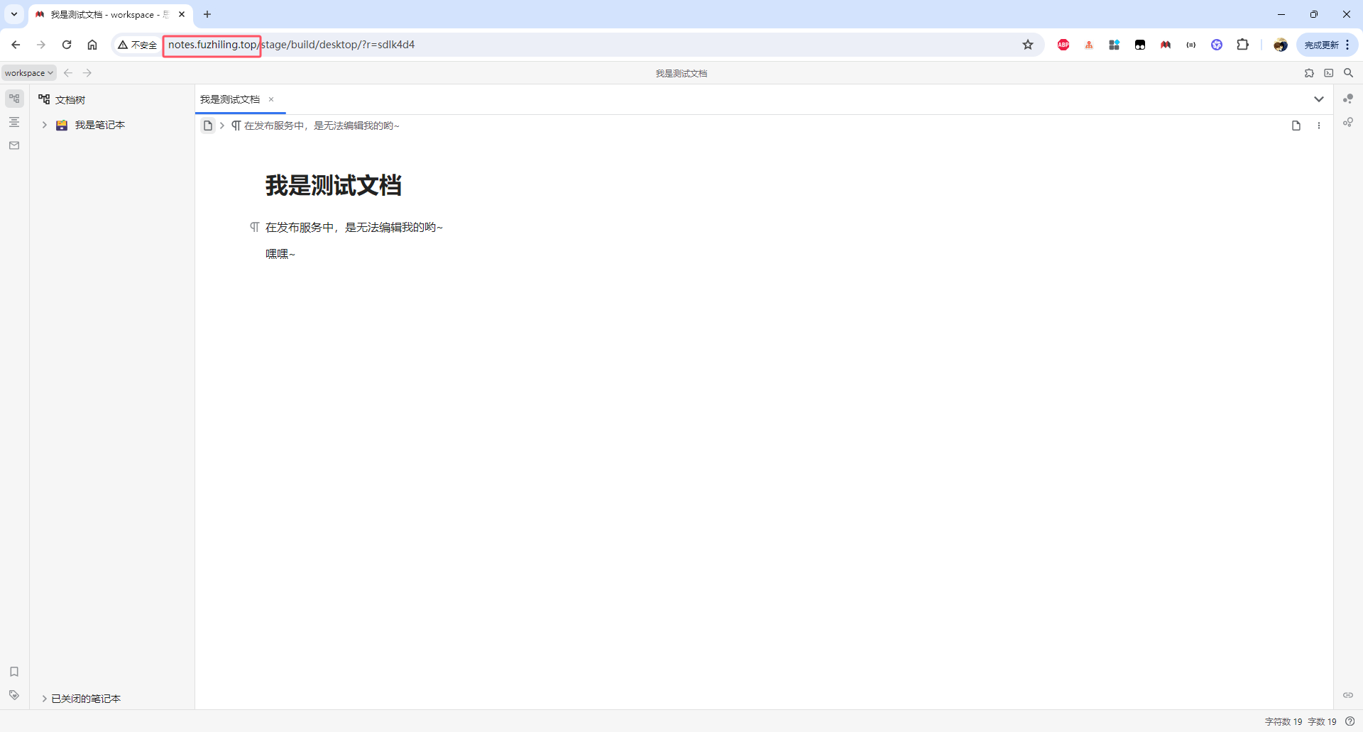 点击保存后,接下来就是见证奇迹的时刻,在浏览器输入 notes.fuzhiling.top ,成功通过域名访问到了思源笔记,而且也不用再记服务的端口号了~