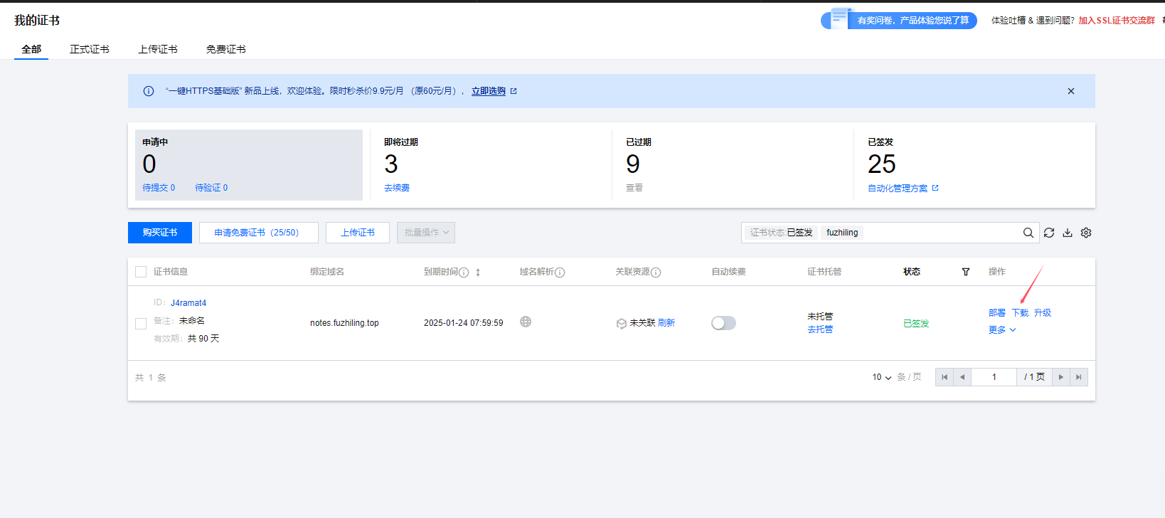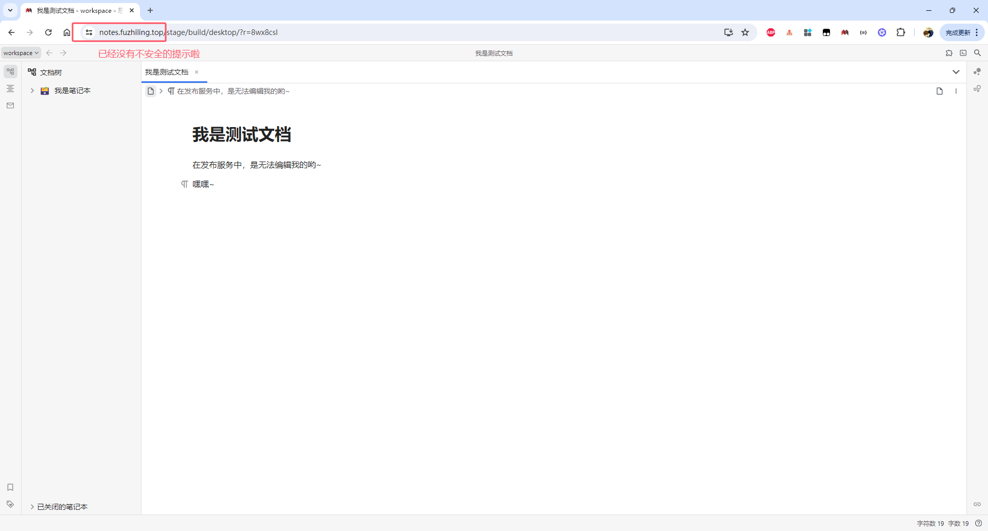 配置完成后点击保存,然后再次在浏览器输入 notes.fuzhiling.top ,就能看到访问的已经是安全的 HTTPS 服务了~