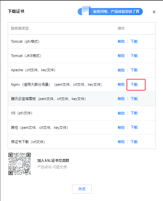 审核通过后,点击右边的下载按钮,选择 Nginx 下载即可