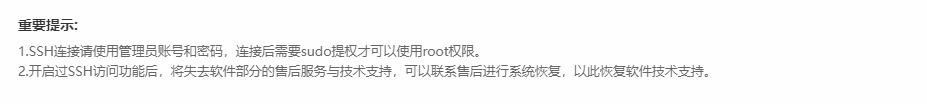 这里考虑到一些小伙伴是小白用户,且 SSH 功能开启后,会失去极空间官方软件部分的售后服务和技术支持,所以有能力的小伙伴可以使用 SSH 部署思源笔记,不想折腾的小伙伴还是可以继续下面教程的方式部署思源笔记~~