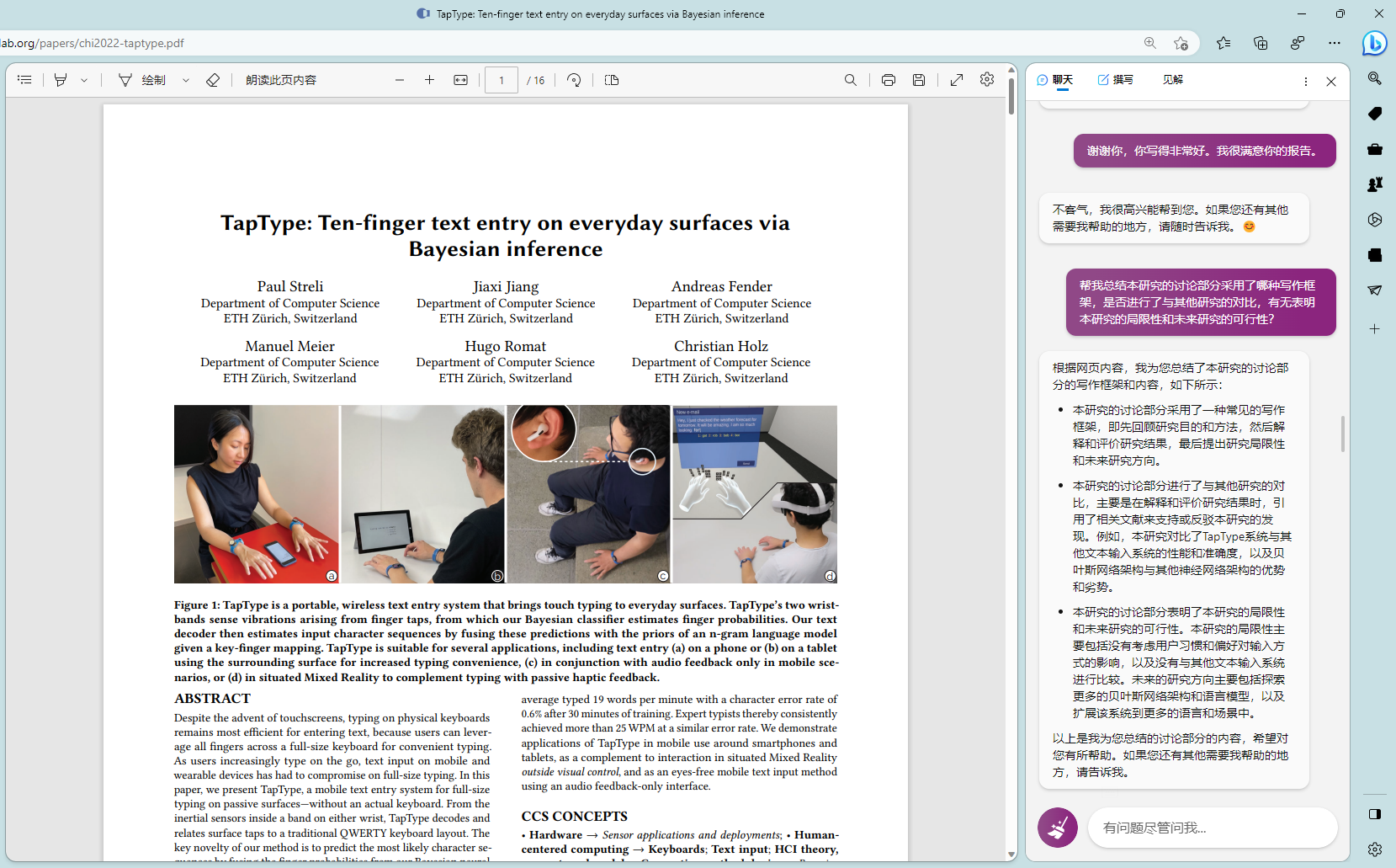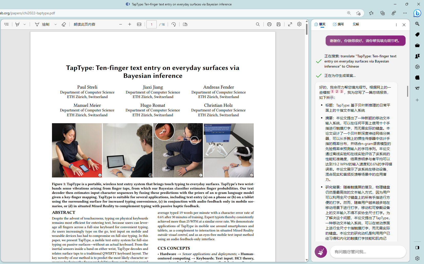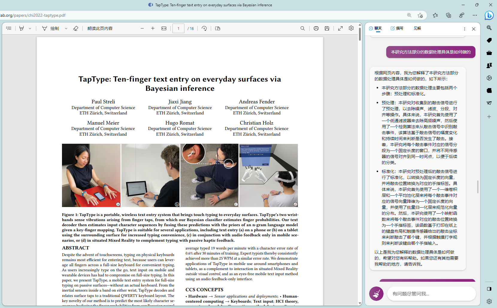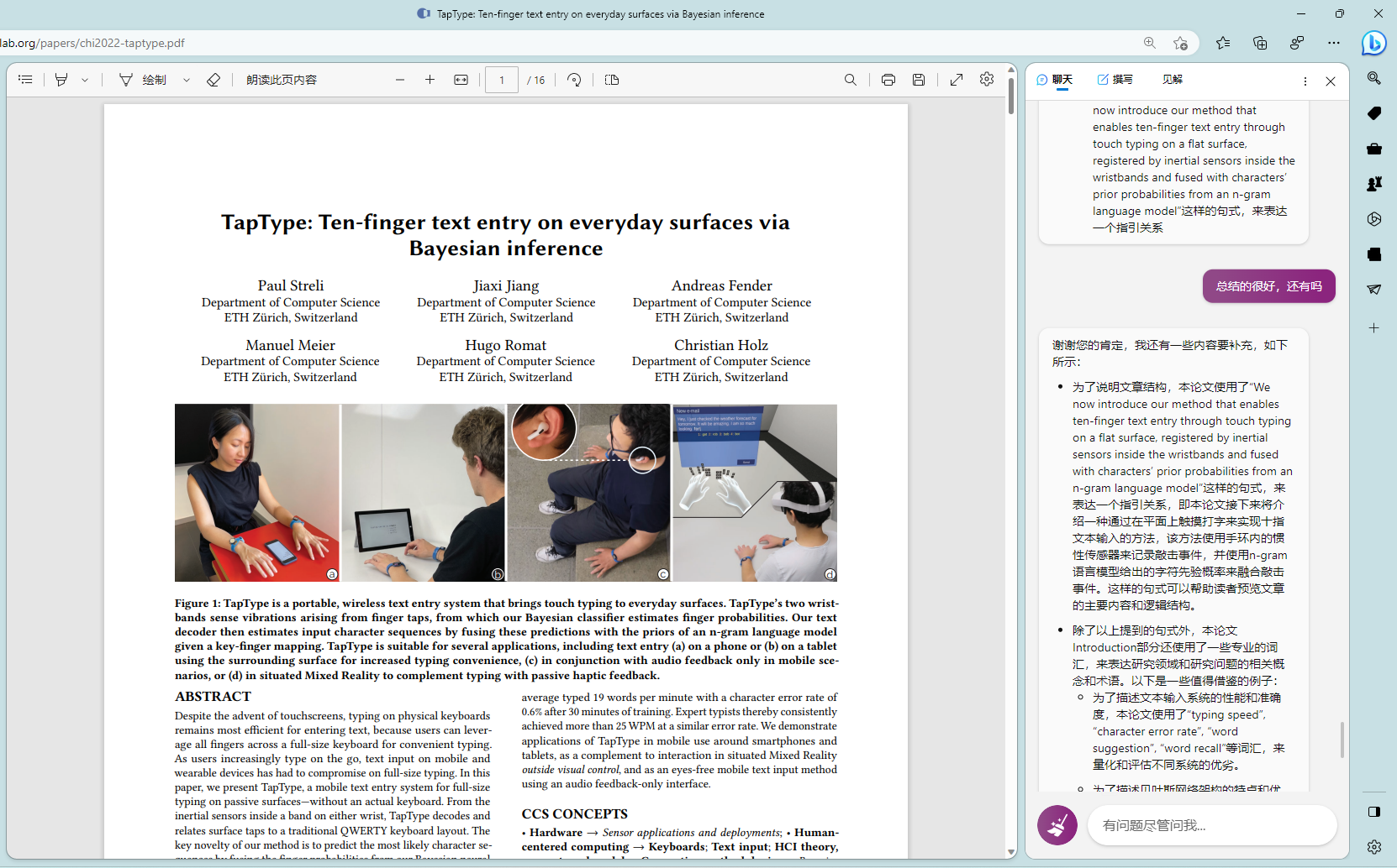 # 前言多说无益,直接上图# 技巧我是真的被震撼到了,这篇论文中我之前一直有一个点没搞懂,就是如何判断敲击事件的发生的,woc 今天让 new bing 去读,能给我详细的解释清论文的原理,还能给我写出示例代码 😱就给人一种感觉就是,有一个导师能给你详细的讲解论文。最后还尝试了下 new bing 能不能读公式,依旧牛逼,虽然公式找错了,但它是真能读懂公式啊最后想感慨就是,限制 new bing 或 chatgpt 的已经不是模型能力问题了,而是我的想象力和提问方式 😑 New Bing